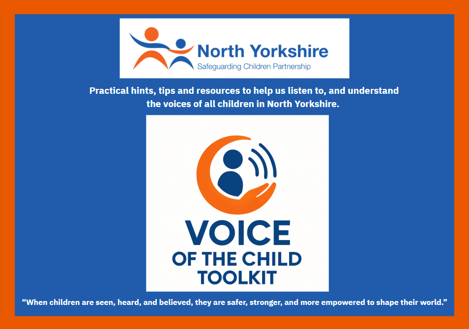 North Yorkshire Safeguarding Children Partnership are delighted to announce the publication of the new Voice of the Child Practice Guidance and the accompanying Voice of the Child Toolkit, now available on the North Yorkshire Safeguarding Children Partnership (NYSCP) website: